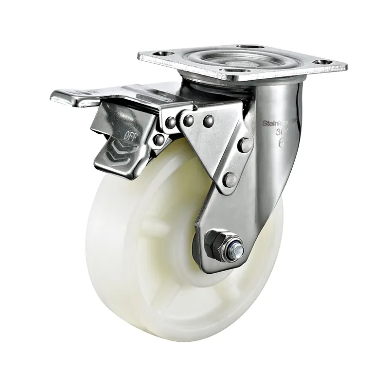 Brake Stainless Steel Caster Plate Mounting, Nylon Wheel